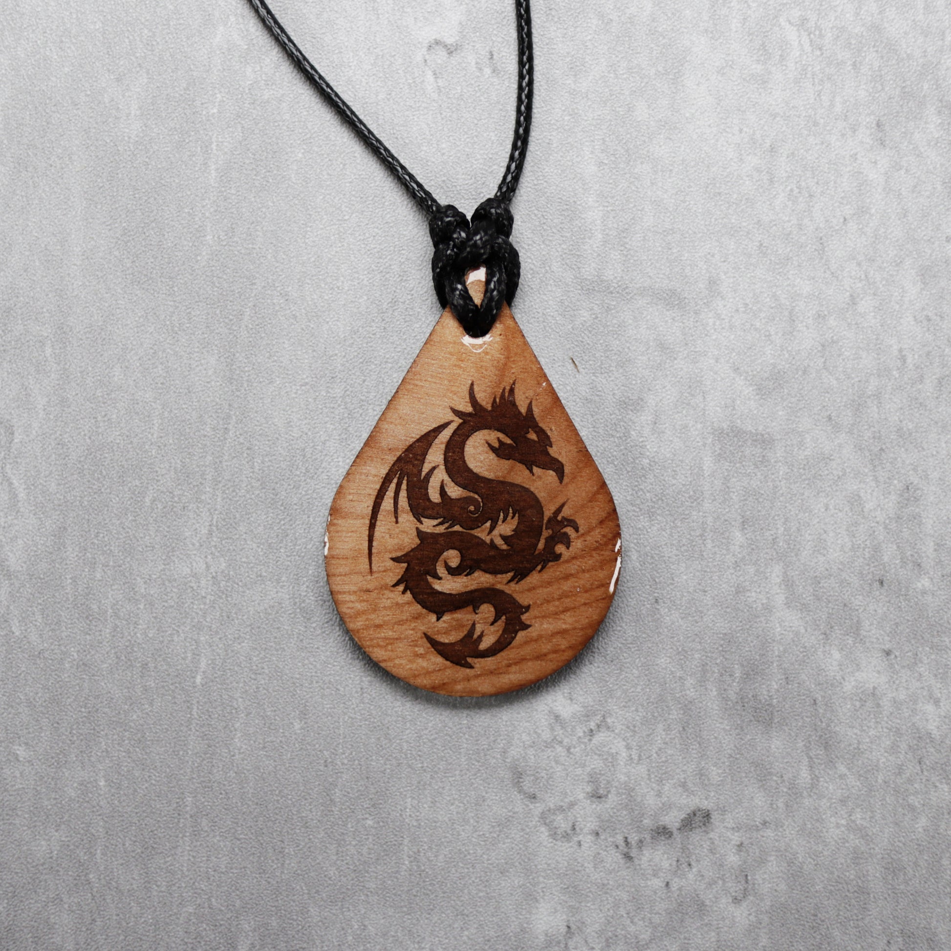 Dragon Wood Teardrop Style Necklace with Adjustable Cord
